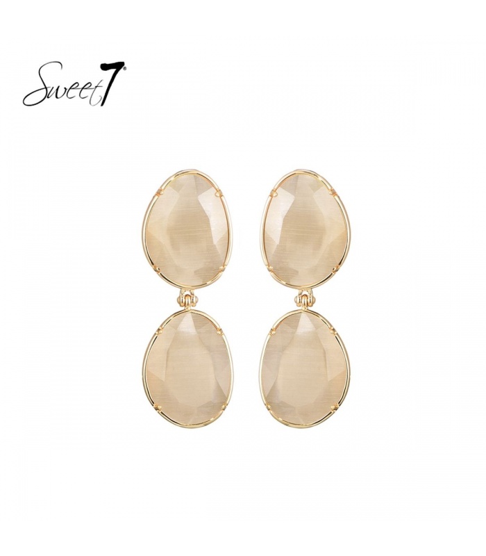 Zoek je een oorbel die licht en verfijnd oogt zonder in te boeten op uitstraling? Deze oorbellen met twee ovale, facetgeslepen steentjes in een zachte nude tint stralen ingetogen luxe uit. Ze reflecteren het licht prachtig en flatteren elke huidtoon.