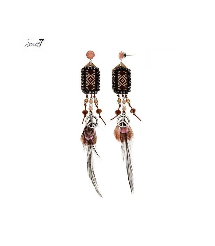Geef je outfit een bohemian touch met deze prachtige bruine oorhangers van Sweet7. De oorbellen zijn voorzien van een mix van kralen, bedels en veren, waardoor ze perfect passen bij de boho trend. Deze oorhangers zijn echte eyecatchers en geven jouw look net dat beetje extra.