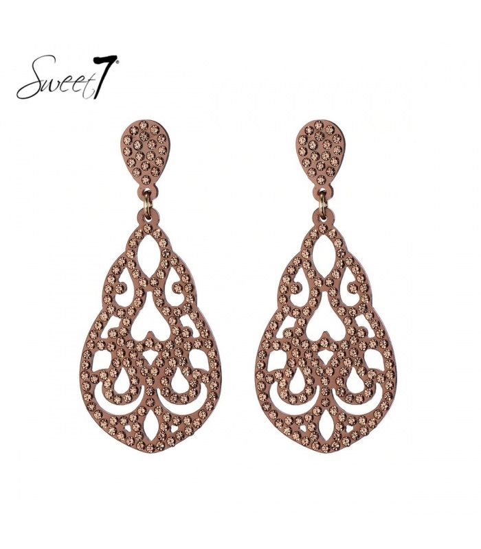 Naturel kleurige oorhangers met steentjes en een open motief