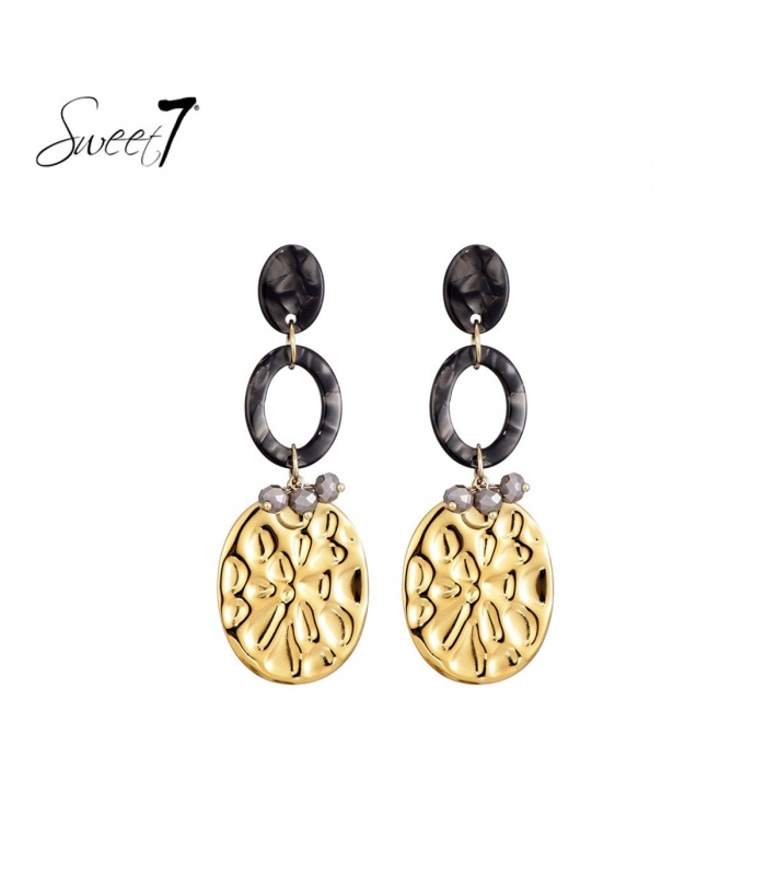 Mag jouw look wel wat sprankeling gebruiken? Deze oorbellen van Sweet7 combineren een gemarmerde ovale ring met een glanzende, goudkleurige hanger en subtiele kraaltjes. De vormen en texturen versterken elkaar voor een opvallend maar elegant geheel.