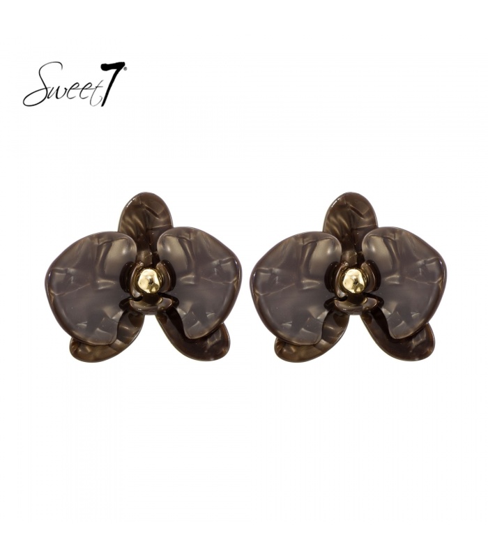 Wil je een subtiele statement maken met een moderne twist? Deze oorbel in de vorm van een gestileerde bloem combineert een elegante marmerlook met een glanzend goudkleurig accent in het hart. De diepe, rokerige tinten geven deze oorbellen een luxe uitstraling die perfect past bij zowel casual als chique outfits.