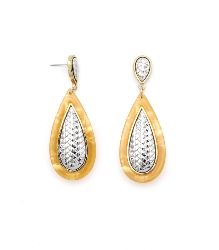 Zoek je een statement accessoire dat opvalt zonder te overdrijven? Deze oorbel combineert warme bruintinten met een zilverkleurige inleg in een strak zigzag patroon. De perfecte balans tussen boho en modern.