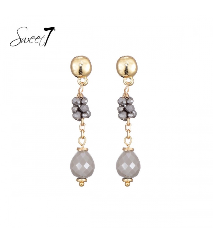 Hoe voeg je moeiteloos elegantie toe aan je outfit? Deze oorbel met grijze facetkralen en goudkleurige accenten is de finishing touch. De zachte glans en neutrale kleur maken dit sieraad perfect voor elke gelegenheid van kantoor tot dinerdate.