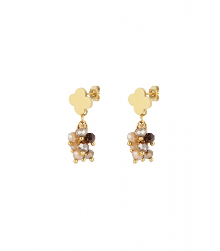 Deze oorbellen combineren beige glas kralen met een elegant klavertje vier, wat zorgt voor een stijlvolle en tijdloze uitstraling. Het klavertje vier staat symbool voor geluk en voegt een uniek detail toe aan het ontwerp. Wist je dat het klavertje vier in veel culturen als geluksbrenger wordt beschouwd? Het dragen van deze oorbellen kan dus een extra betekenisvolle touch aan je outfit geven