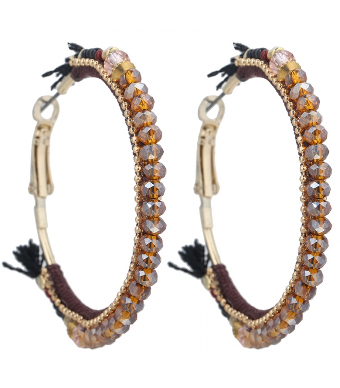 Gekleurde oorringen van bruine iriserende facet glaskralen.