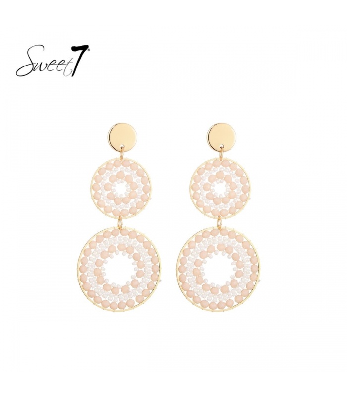 Deze elegante oorbellen combineren beige en witte glaskralen met een verfijnde goudkleurige rand. Het tijdloze ontwerp maakt ze geschikt voor zowel casual als formele gelegenheden. De hoogwaardige materialen zorgen voor duurzaamheid en een luxueuze uitstraling.
