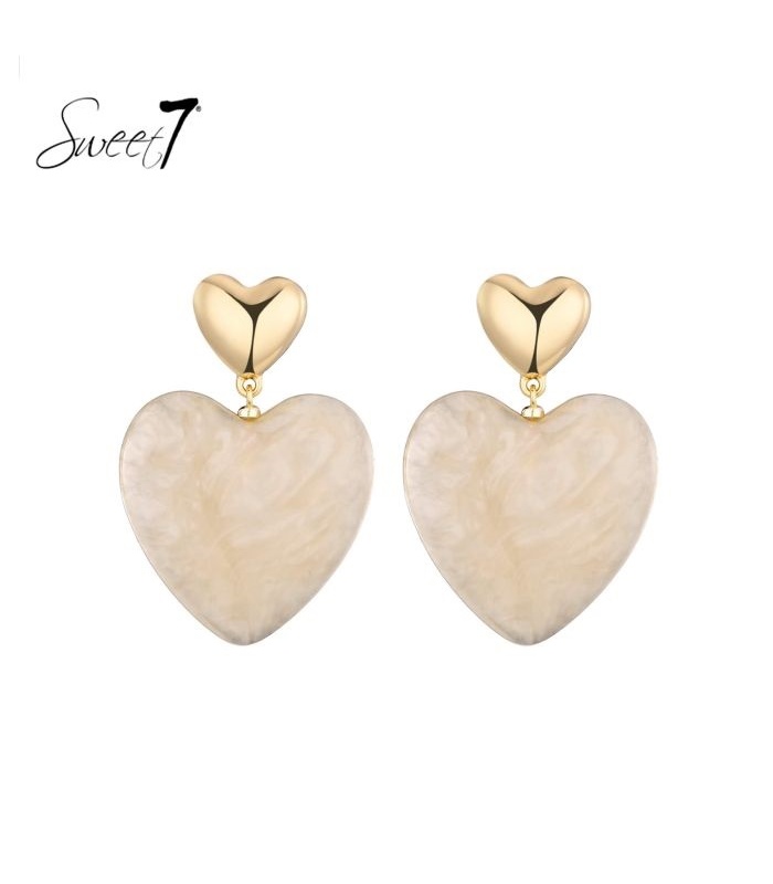 Wat draag je als je zachtheid wilt laten opvallen? Deze harten oorbellen van Sweet7 combineren een subtiele uitstraling met een groots gebaar. Het bovenste hartje in glanzend goud zorgt voor een chique touch, terwijl het grote hart in creme kleur een dromerig effect geeft, als liefde in lichte vorm.
