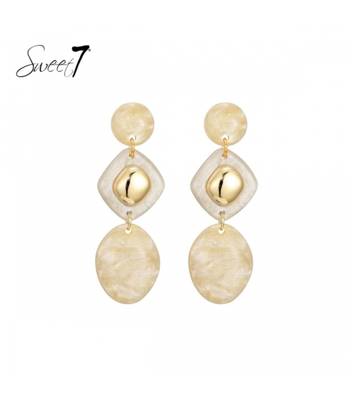 Hoe trek je moeiteloos de aandacht zonder te overdrijven? Deze oorbellen combineren een marmerlook in zachte beige tinten met glanzende goudkleurige elementen. Een verfijnde balans tussen modern design en natuurlijke uitstraling.