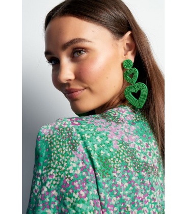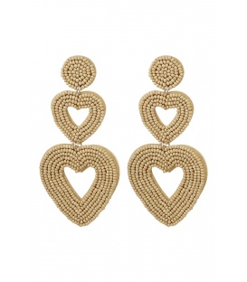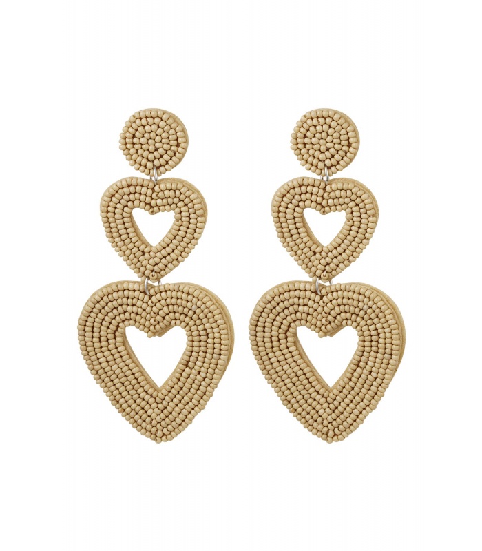 Beige kralen oorhangers met 2 harten