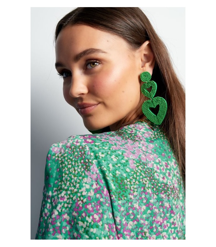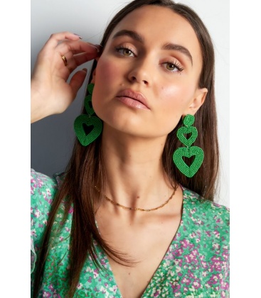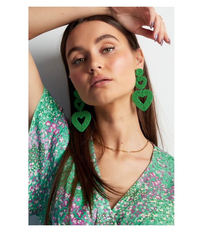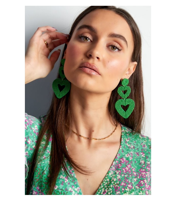 Trendy en Stijlvol: Beige Kralen Oorhangers met 2 Harten