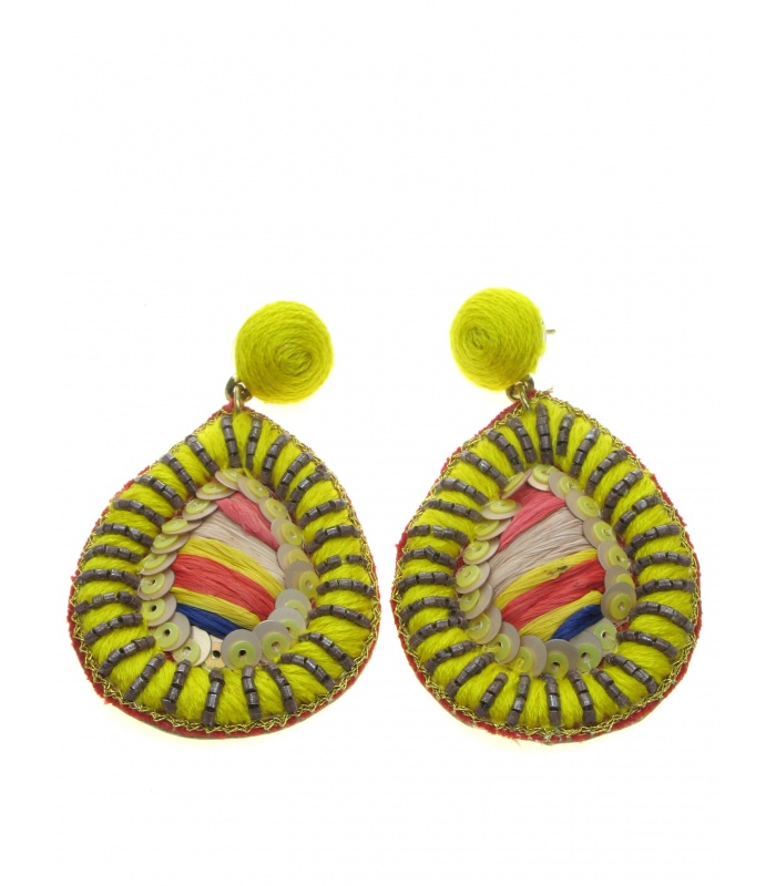 Trendy Gele Oorhangers met Raffia, Koord, Pailletjes en Kralen: Zomerse Elegante Accessoires
