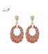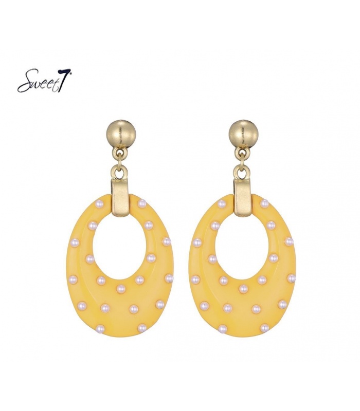 Oorbellen met ovale gele hanger en kleine pareltjes