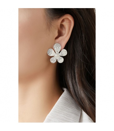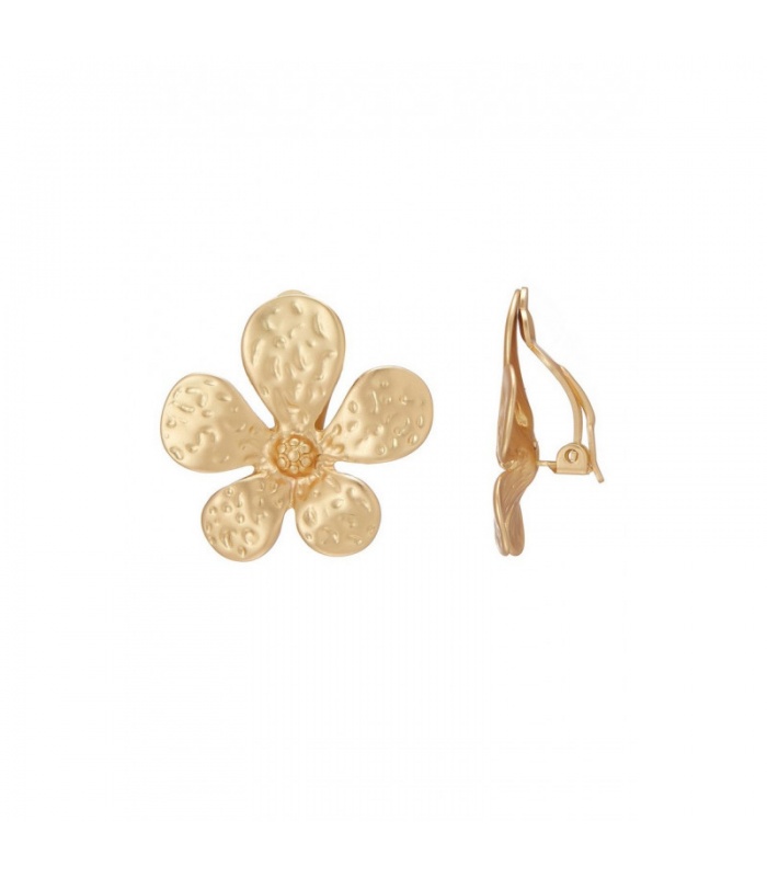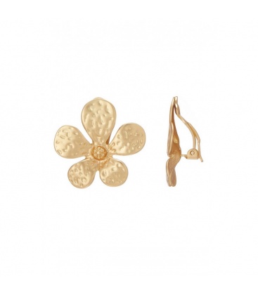Oorclips goudkleur in bloemvorm met gehamerd motief