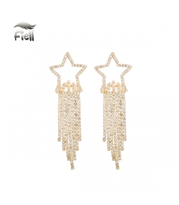 Gouden Oorhangers met Glas Steentjes en Ster - Elegante Modeaccessoires