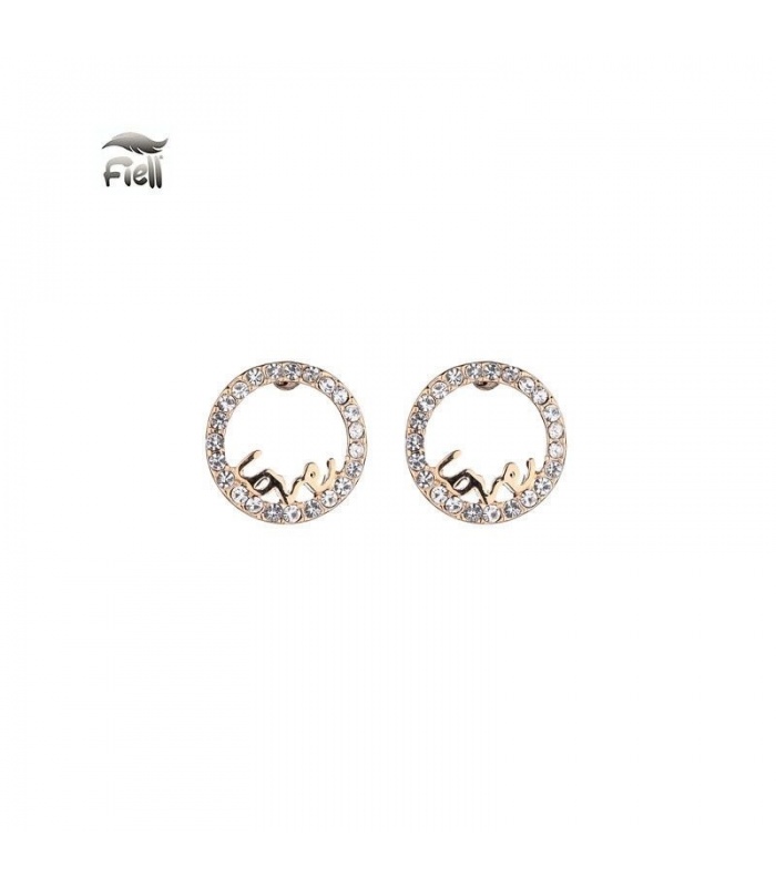 Goudkleurige ronde oorknopjes met kleine steentjes en 'LOVE'