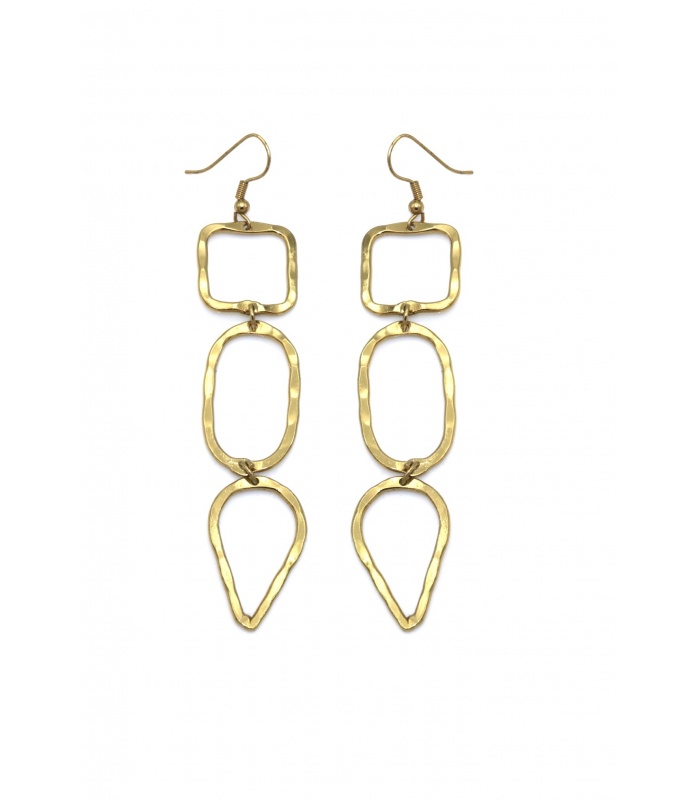 Goudkleurige oorbellen met drie unieke vormen geven je look een speelse twist. De combinatie van verschillende vormen zorgt voor een opvallend design. Deze oorbellen zijn lichtgewicht en comfortabel, perfect voor dagelijks gebruik of een speciale gelegenheid.