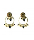 Goudkleurige oorhangers met een mooi motief ,bedels en groene kralen.