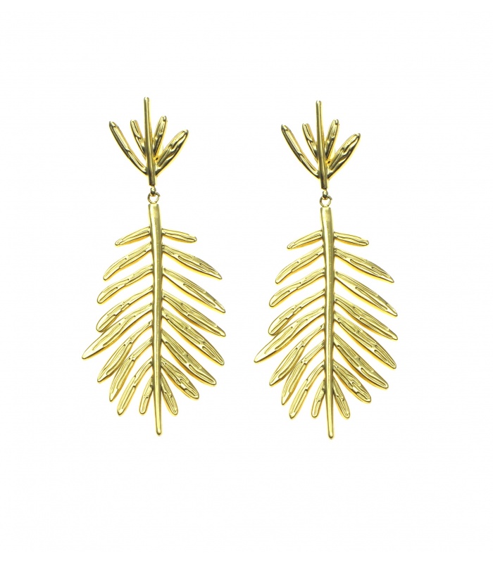Mooie goudkleurige oorhangers in de vorm van een blad.