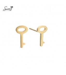 Goudkleurige oorbellen in de vorm van een sleutel.