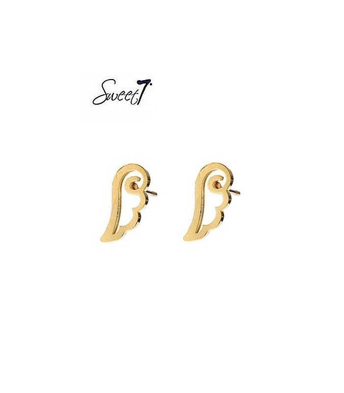 Goudkleurige oorbellen in de vorm van een vleugel.