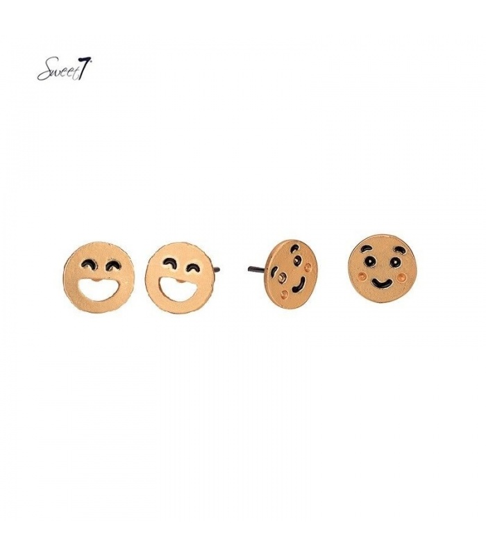 Goudkleurige oorbellen met 2 verschillende gezichtjes.
