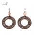 Goudkleurige oorhangers mat kleine kraaltjes en geweven draad.