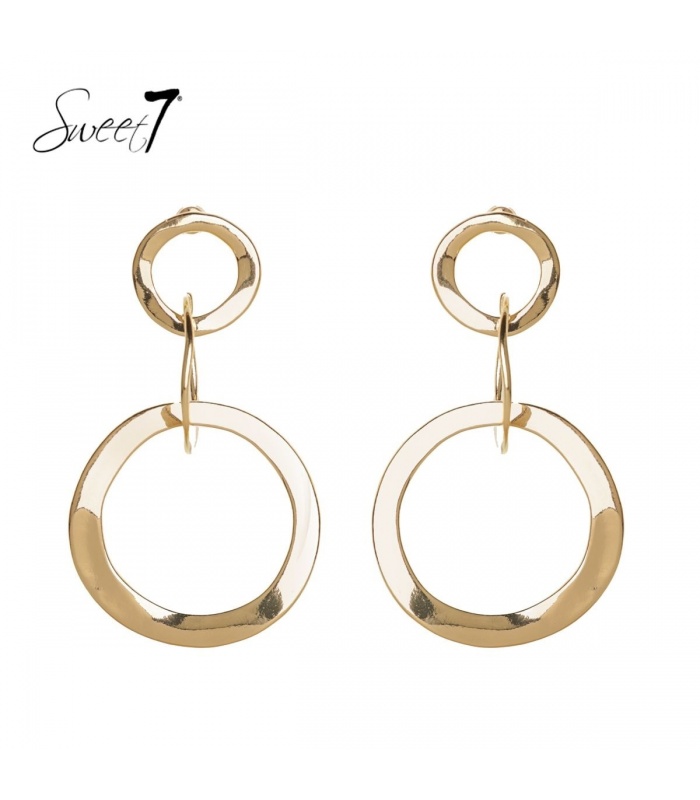 Goudkleurige oorhangers met 2 ringen en een goudkeurige oorstukje.