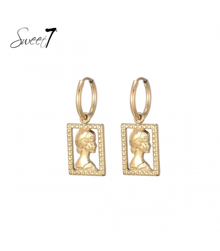 Deze goudkleurige oorhangers met een gedetailleerde dame als bedel zijn een opvallende toevoeging aan elke sieradencollectie. De verfijnde afbeelding van de dame geeft deze oorbellen een artistiek en elegant karakter. Perfect voor liefhebbers van vintage stijl met een moderne twist.