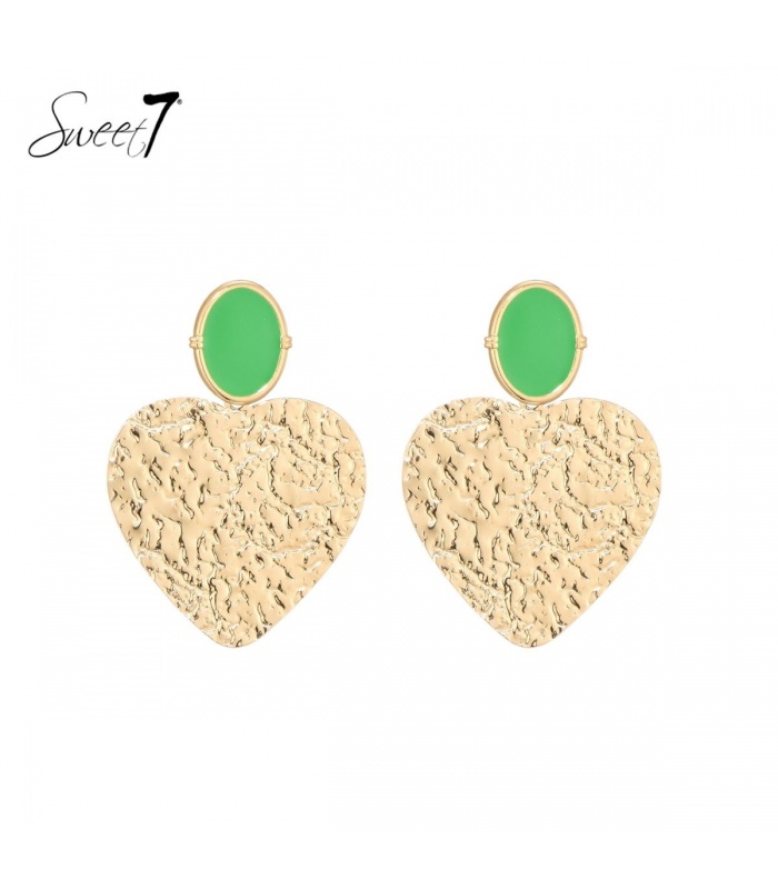 Geef je outfit een frisse en trendy uitstraling met de stralende goudkleurige oorhangers met een groen oorstukje van Sweet7. Deze prachtige accessoires zijn perfect voor dames die op zoek zijn naar een vleugje kleur om hun look te accentueren en een fashion statement te maken.