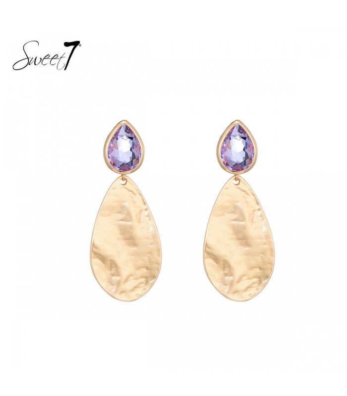 Bestel vandaag nog deze prachtige goudkleurige oorhangers met een paars steentje als oorstukje van Sweet7 en voeg een chique touch toe aan je sieradencollectie!
