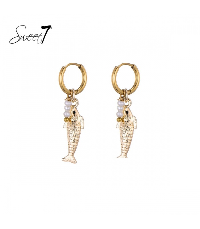 Deze oorbellen combineren speelse vissen bedels met subtiele pareltjes. Ze stralen een luxe fashion vibe uit en passen perfect bij jouw sieradencollectie. Door de goudkleurige stainless steel voelen ze chic en modern aan.