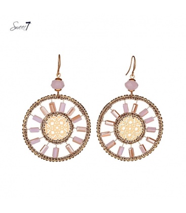 Prachtige Goudkleurige Oorhangers met Koord en Roze Kralen