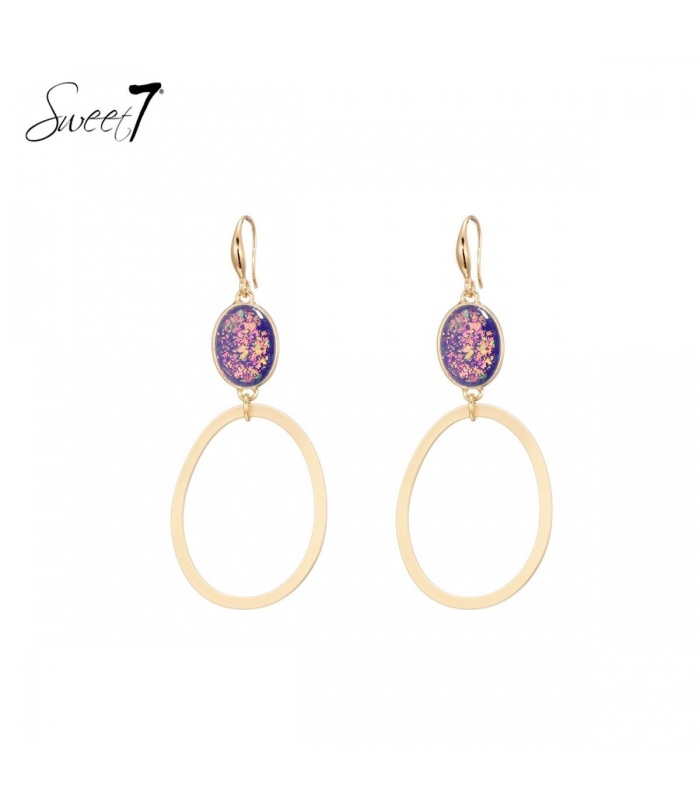 Bestel vandaag nog deze prachtige goudkleurige oorhangers met een paars steentje als oorstukje van Sweet7 en voeg een chique touch toe aan je sieradencollectie!
