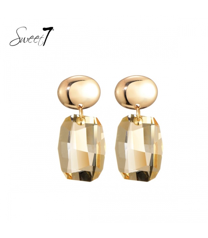 Hoe trek je moeiteloos alle aandacht naar je gezicht? Deze oorbellen combineren een goudkleurige bol met een helder facetgeslepen steen in champagnekleur. Het licht speelt op elke vlak, wat zorgt voor een subtiele, luxe glans.