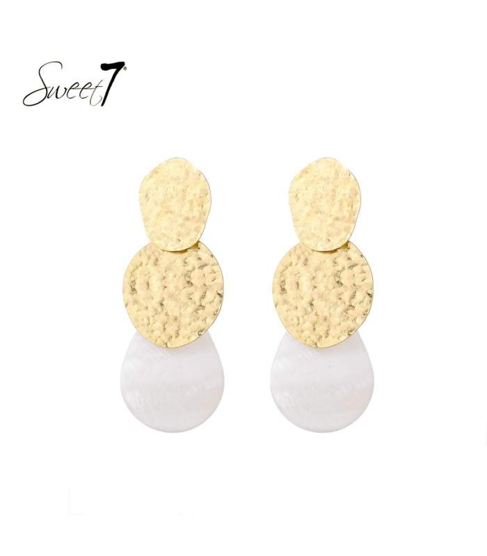 Wat maakt deze oorbel zo uniek? De combinatie van hamerslag goud en een zachte witte hanger creeert een speels contrast. Deze oorbellen vangen het licht subtiel en geven elke look een moderne, verfijnde touch.