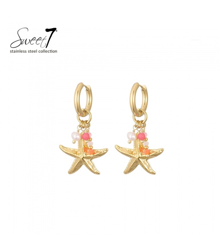 Wat maakt deze oorbellen zo bijzonder? De speelse zeester in combinatie met fijne kralen geeft elke oorbel een zomerse uitstraling. Deze gouden oorbellen brengen strand stijl en passen perfect bij lichte stoffen en sieraden trends. De oorbellen zijn gemaakt van stainless steel en blijven lang mooi. De subtiele kralen in zachte tinten zorgen voor een frisse touch. Ideaal als trendy oorbel voor warme dagen of een zonnige vakantie.