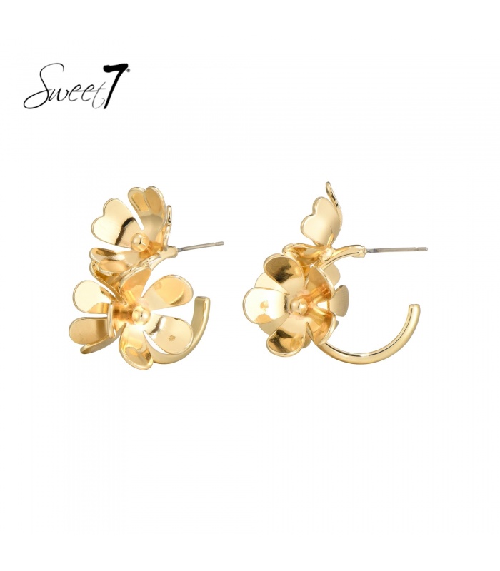 Deze fashion oorbellen combineren een klassieke creoolvorm met een frisse, florale twist. De hoogglans afwerking versterkt hun luxe look, ideaal bij opgestoken haar of een strakke outfit. Een subtiele statement voor de stijlbewuste vrouw.