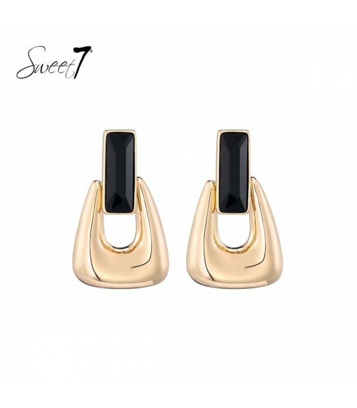 Hoe combineer je een statement look? Deze oorbel van Sweet7 doet precies dat. De geometrische vorm en het contrast tussen goudkleurig metaal en zwarte steen geven een krachtige, moderne uitstraling.