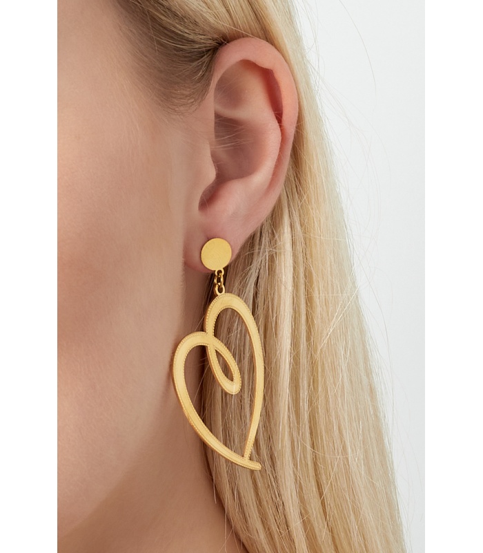 Goudkleurige harten oorhangers met een bewerkte rand.