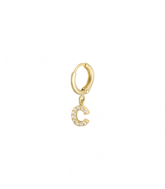 Goudkleurige oorbel met zirkonia steentjes en initiaal C
