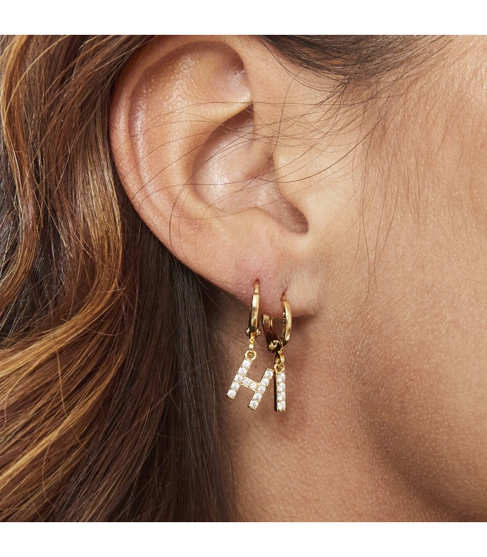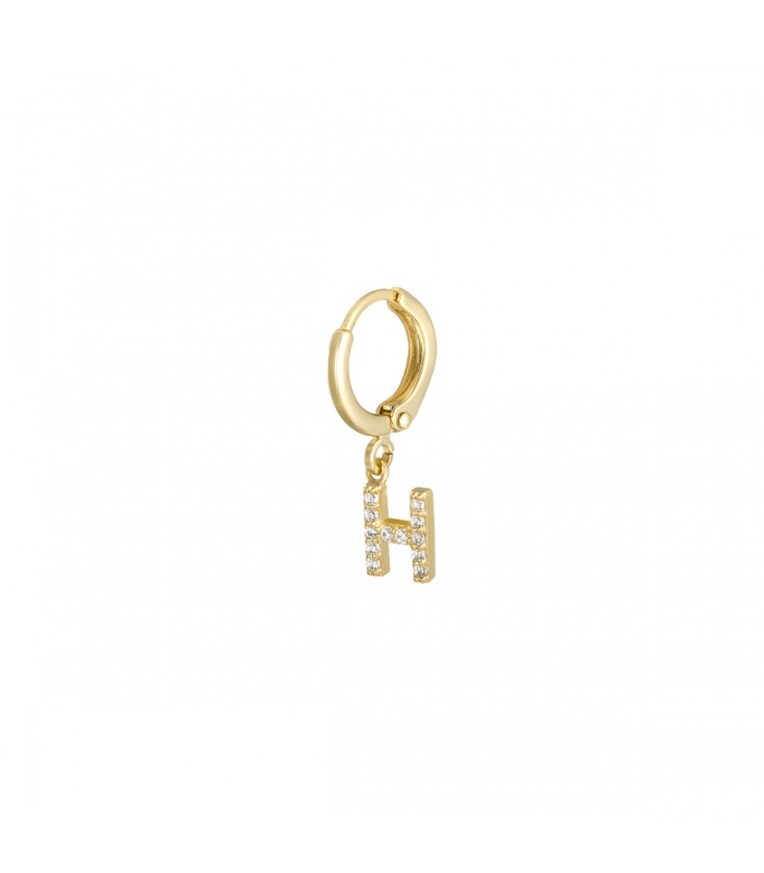 Goudkleurige oorbel met zirkonia steentjes en initiaal H
