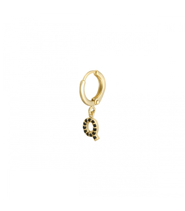 Goudkleurige oorbel met zwarte zirkonia steentjes en initiaal Q