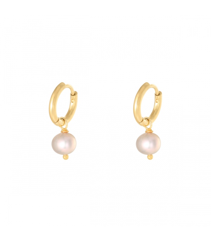 Goudkleurige oorbellen met een witte parelbedel
