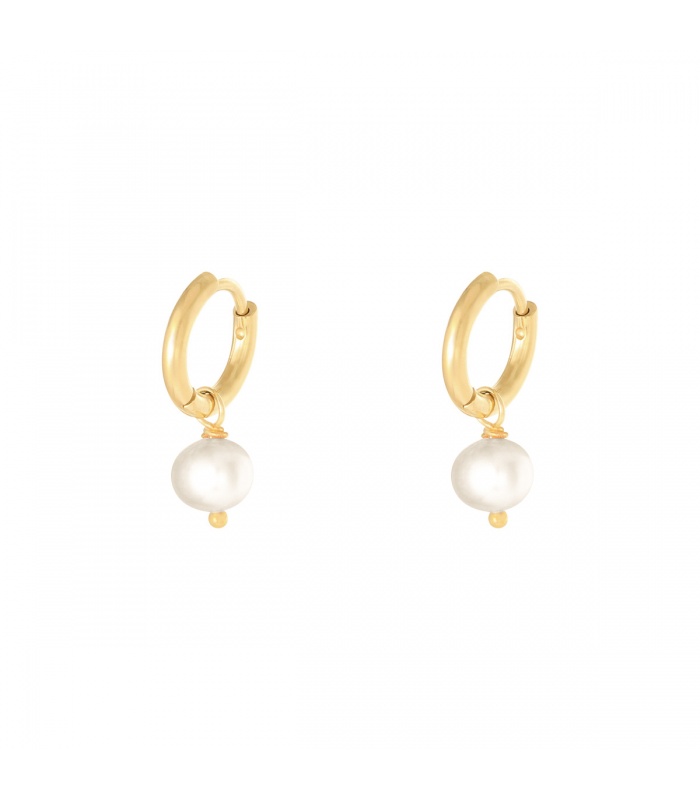 Goudkleurige oorbellen met een witte parelbedel