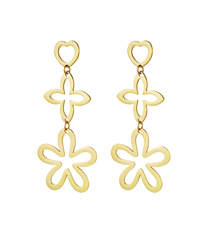 Goudkleurige oorhangers met 3 bedels ,hart en bloemen.
