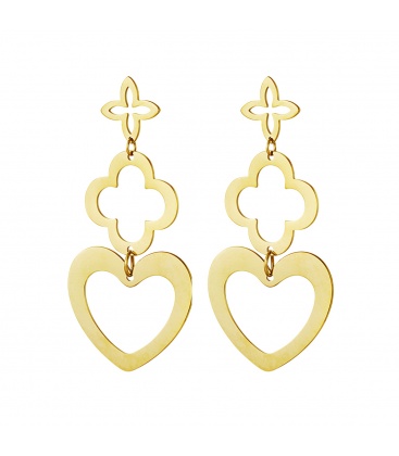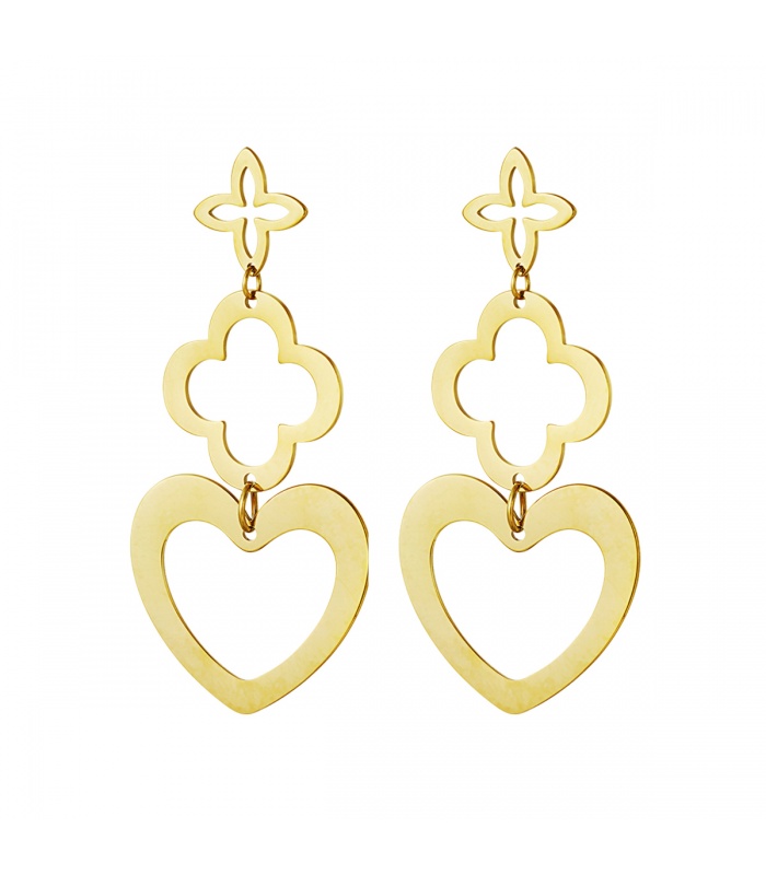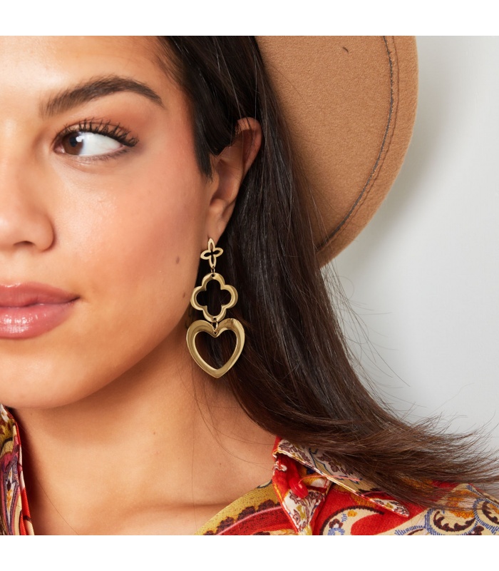 Goudkleurige oorhangers met 3 verschillende bedels.