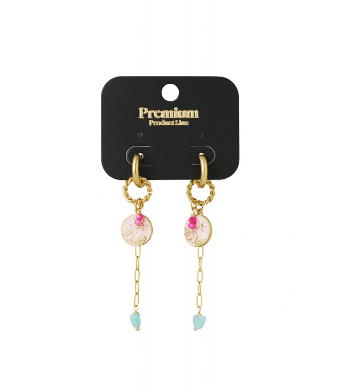 Deze goudkleurige oorhangers met roze bedels, kraaltjes en een hartje voegen een speelse elegantie toe aan je look. Het verfijnde ontwerp combineert de warmte van goud met de zachte tinten van roze, perfect voor zowel dagelijkse als feestelijke gelegenheden.