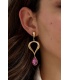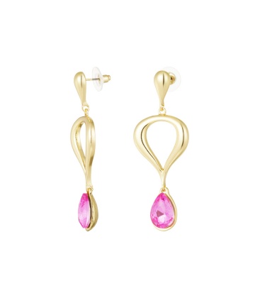 Sierlijk goudkleurige oorhangers met een verfijnd roze glas steentje. Deze oorbellen combineren tijdloze elegantie met een moderne touch, perfect voor elke gelegenheid. Het subtiele roze steentje voegt een speelse maar chique flair toe aan uw outfit.