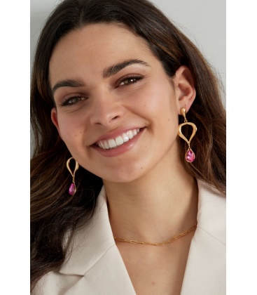 Ze zijn veelzijdig en passen bij zowel een casual look als een avondoutfit. De goudkleurige afwerking zorgt voor een luxueuze uitstraling, terwijl het roze steentje een vrouwelijke charme toevoegt. Deze oorhangers zijn niet alleen een statement stuk maar ook een perfect cadeau voor de modebewuste vrouw.