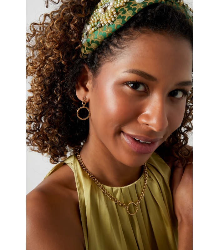 De goudkleurige oorhangers met een schakel ketting en een cirkel met bolletjes zijn perfect te dragen bij een formele gelegenheid, maar ook bij een casual outfit. Ze zijn geschikt voor een avondje uit, een bruiloft of gewoon voor dagelijks gebruik.